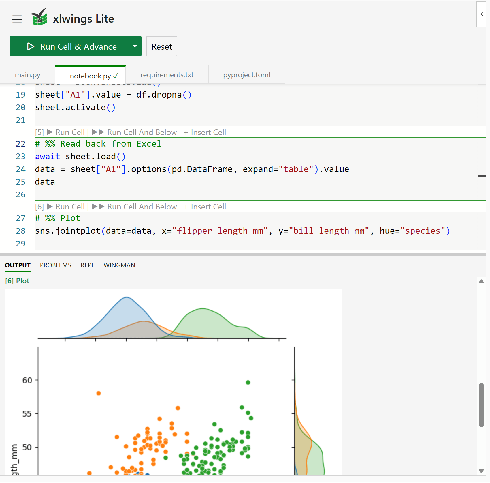 xlwings Lite now has a Jupyter notebook experience built in! notebook.py supports your interactive workflow in addition to the script buttons and custom functions that you define in main.py.